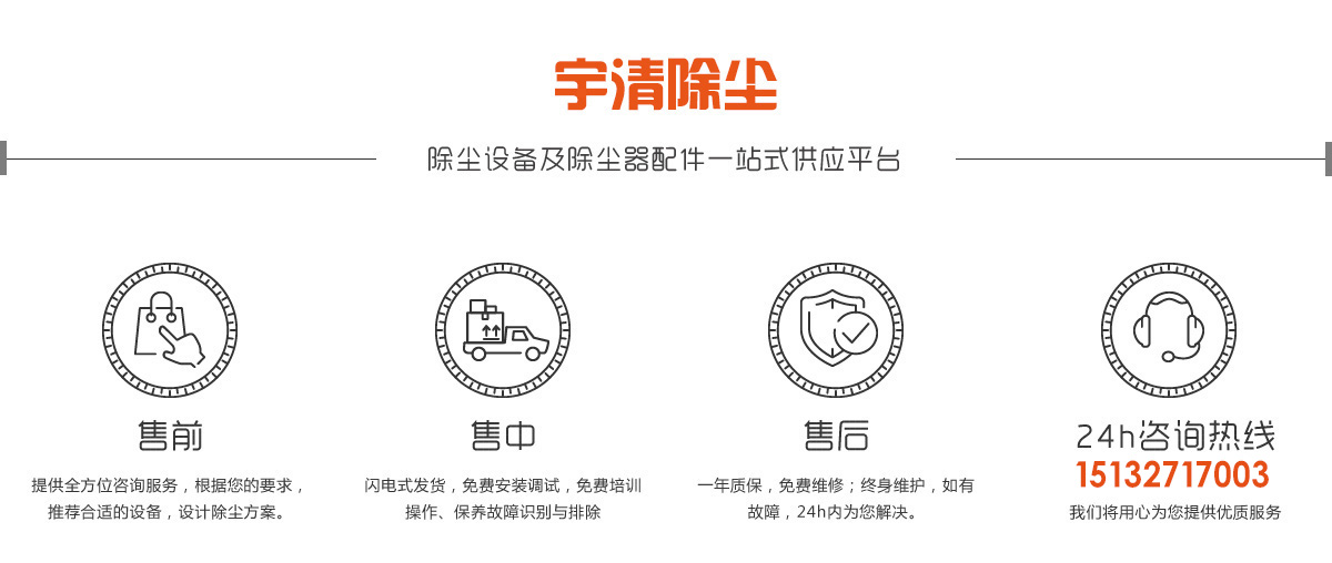 宇清除塵設(shè)備有限公司擁有多年布袋除塵器及配件的生產(chǎn)經(jīng)驗(yàn),公司擁有好的生產(chǎn)設(shè)備,標(biāo)準(zhǔn)化的生產(chǎn)工廠, 以“實(shí)體生產(chǎn),保證貨源,售后無憂”的經(jīng)營理念服務(wù)廣大客戶。